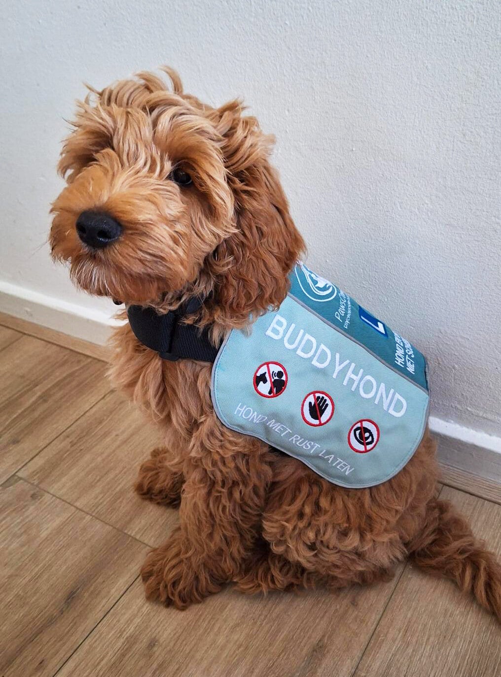 De vorm verschilt dus per situatie: van een subtiel label op een tuigje tot een meer zichtbaar dekje. Ook de tekst kan variëren, van ‘hulphond’ of ‘assistentiehond’ tot bijvoorbeeld ‘buddyhond’, afhankelijk van wat voor iemand prettig voelt en bij hen past.